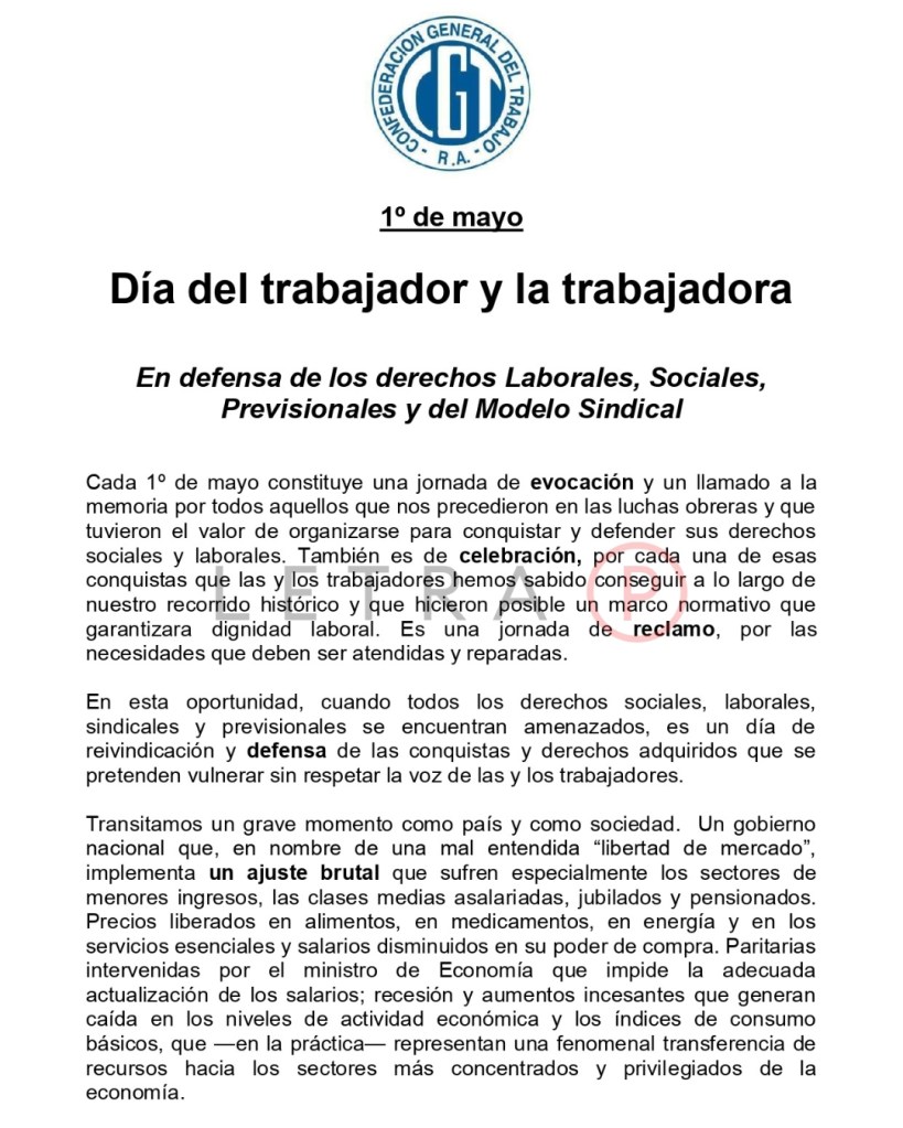 En ese contexto, sumado al inicio de reforma laboral y al restablecimiento de Ganancias sobre salarios menguados que el opoficialismo de Diputados le facilitó a Milei en el proyecto ómnibus, es natural que la CGT muestre los dientes. Ya lo hizo el 24 de enero, lo reiteró este 1 de mayo con una manifestación importante –pero que no captó demasiadas voluntades no encuadradas– y lo replicará el jueves 9 con una huelga general.
