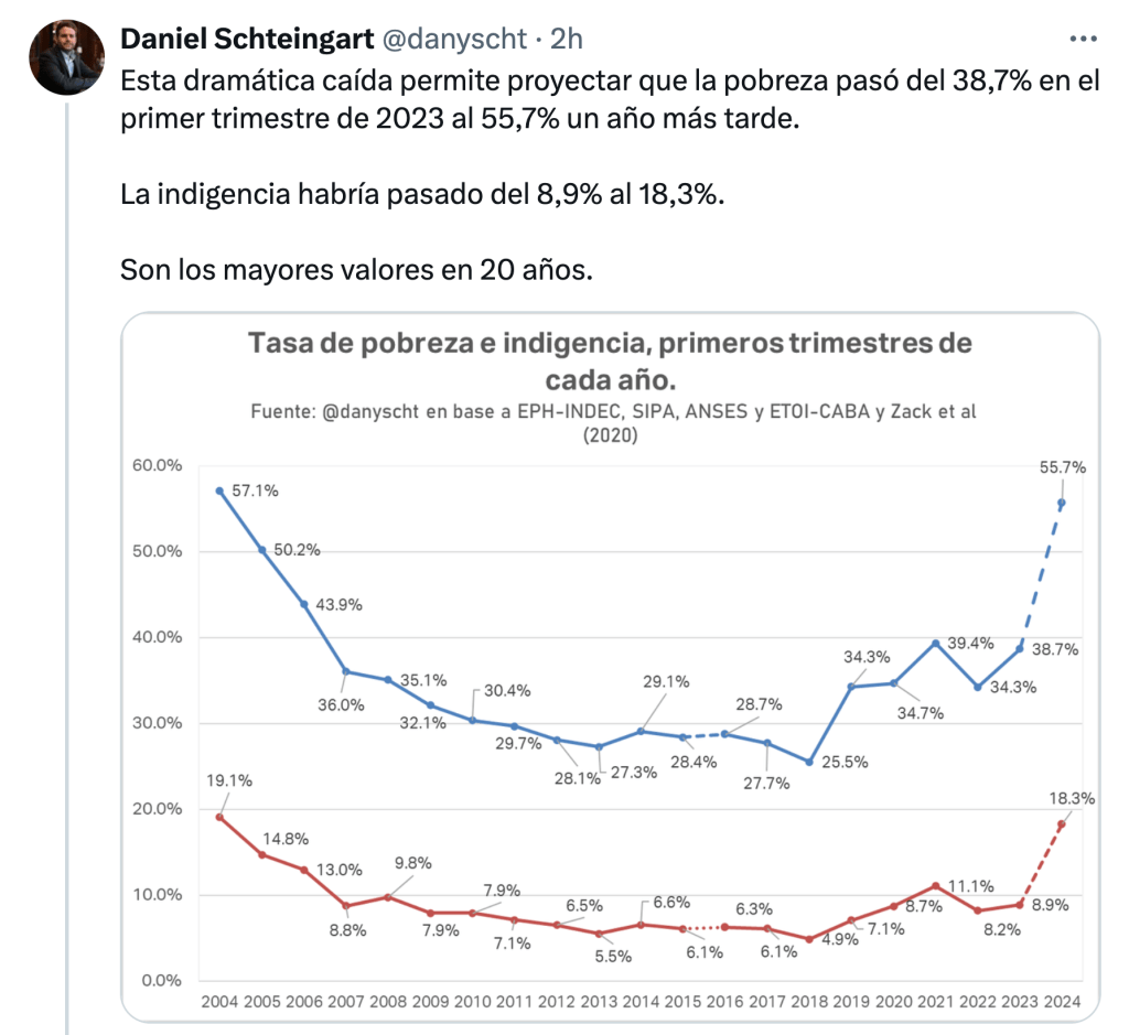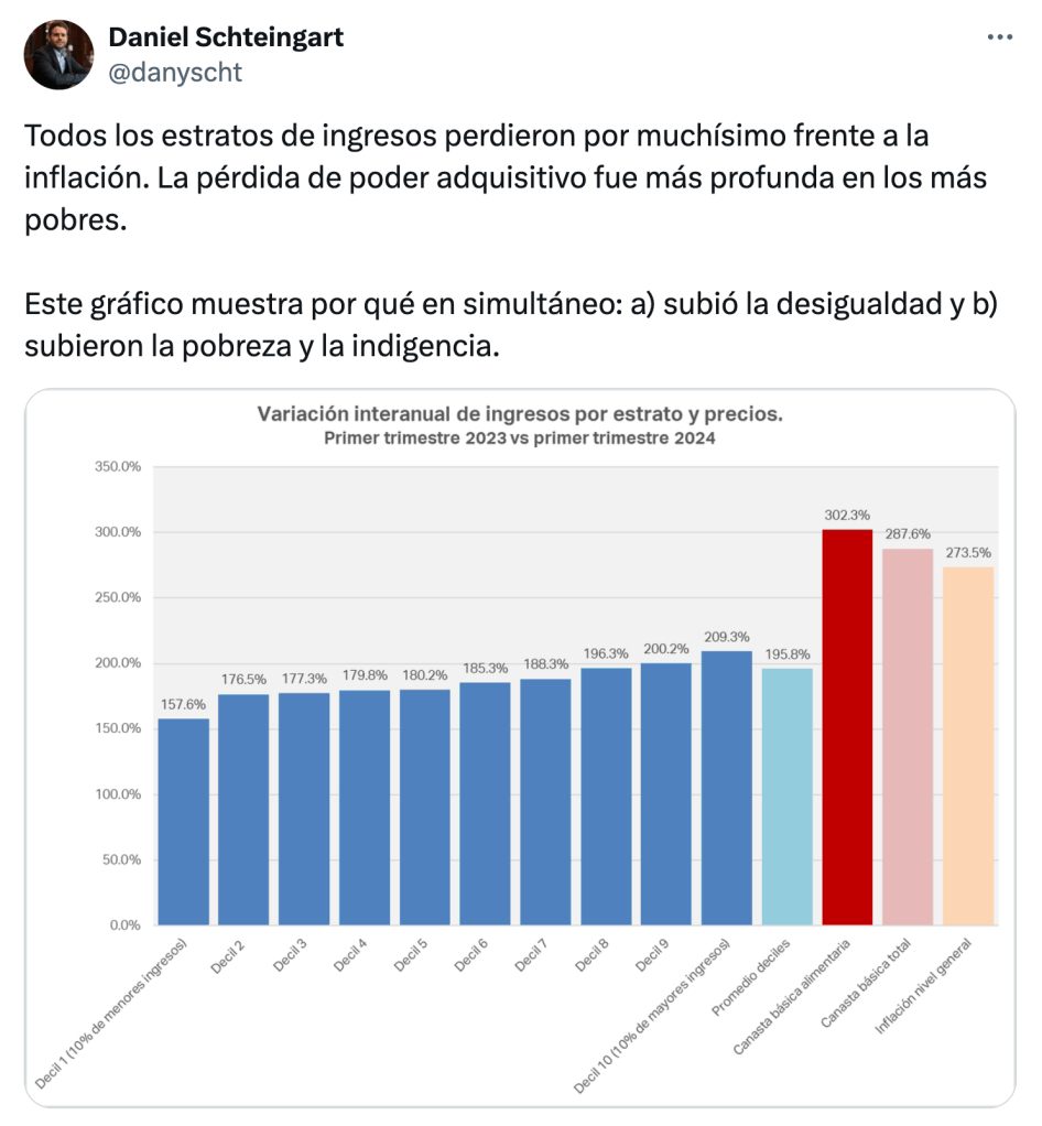 En un trimestre, la inequidad escaló en la Argentina paleolibertaria. Disciplinar la puja distributiva, tuit fijado a la derecha. Un modelo lleno de perdedores.