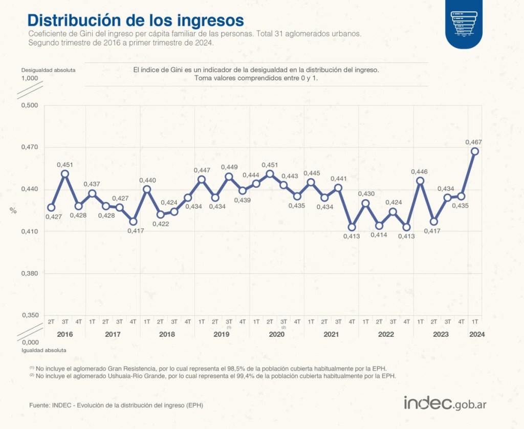 En tanto, tras el repunte severo de la desigualdad con Macri, vino una cierta reducción con Alberto Fernández y un nuevo estallido al alza en la Argentina de El Topo.