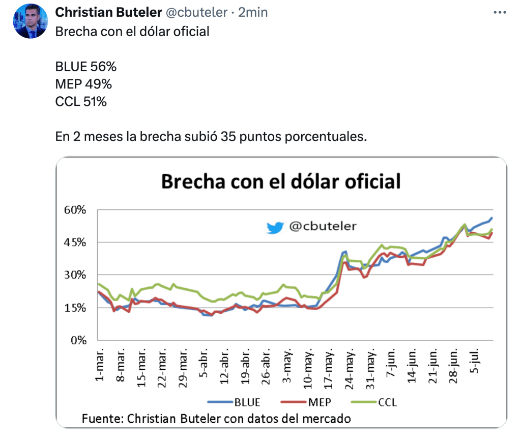 En el fondo, entonces, es la relación con el mercado financiero lo que está en crisis: este jueves volvieron a subir –considerablemente– los tipos de cambio paralelos –la brecha con el oficial ya apunta al 60%, la mayor de la era paleolibertaria– y también el riesgo país.