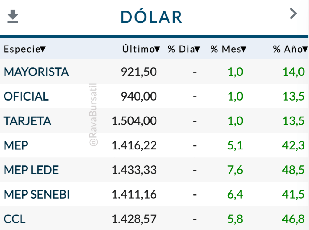 En la Argentina encepada hay múltiples tipos de cambio: básicamente, el oficial, el blue, y los paralelos –legales– negociados en bolsa. Estos últimos –el dólar MEP, o Mercado Electrónico de Pagos, y el CCL, o contado con liquidación– son los más importantes del segmento libre.