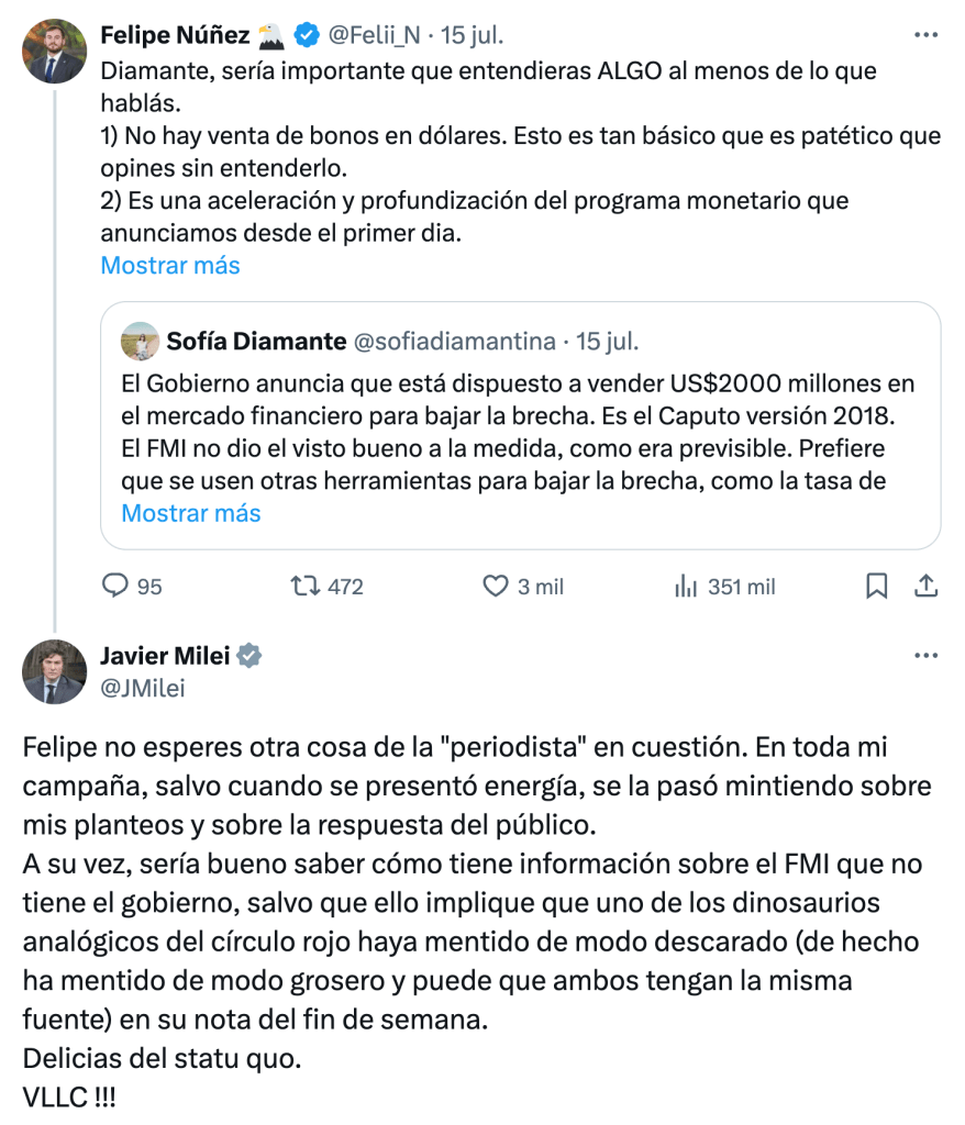 Una de las periodistas que escribió sobre el recelo del FMI acerca de la segunda fuga de Toto fue Sofía Diamante, de La Nación. La colega, muy respetada, cifró el nuevo festival, en base a información obtenida en el propio Gobierno, en 2.000 millones de dólares.