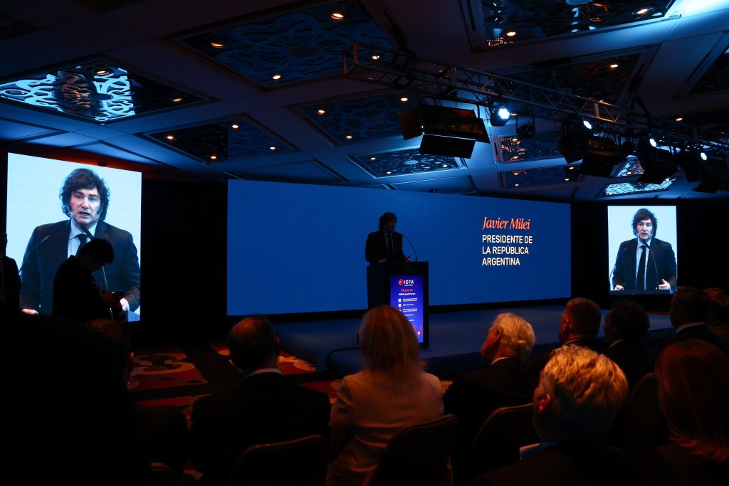 A fines de marzo, el jefe de Estado dio el discurso de cierre del International Economic Forum of the Americas (IEFA Latam Forum), donde también expuso el director del Departamento del Hemisferio Occidental del Fondo Monetario Internacional (FMI) Rodrigo Valdés, nuevo enemigo del Presidente por considerarlo un comunista «del Foro de San Pablo».