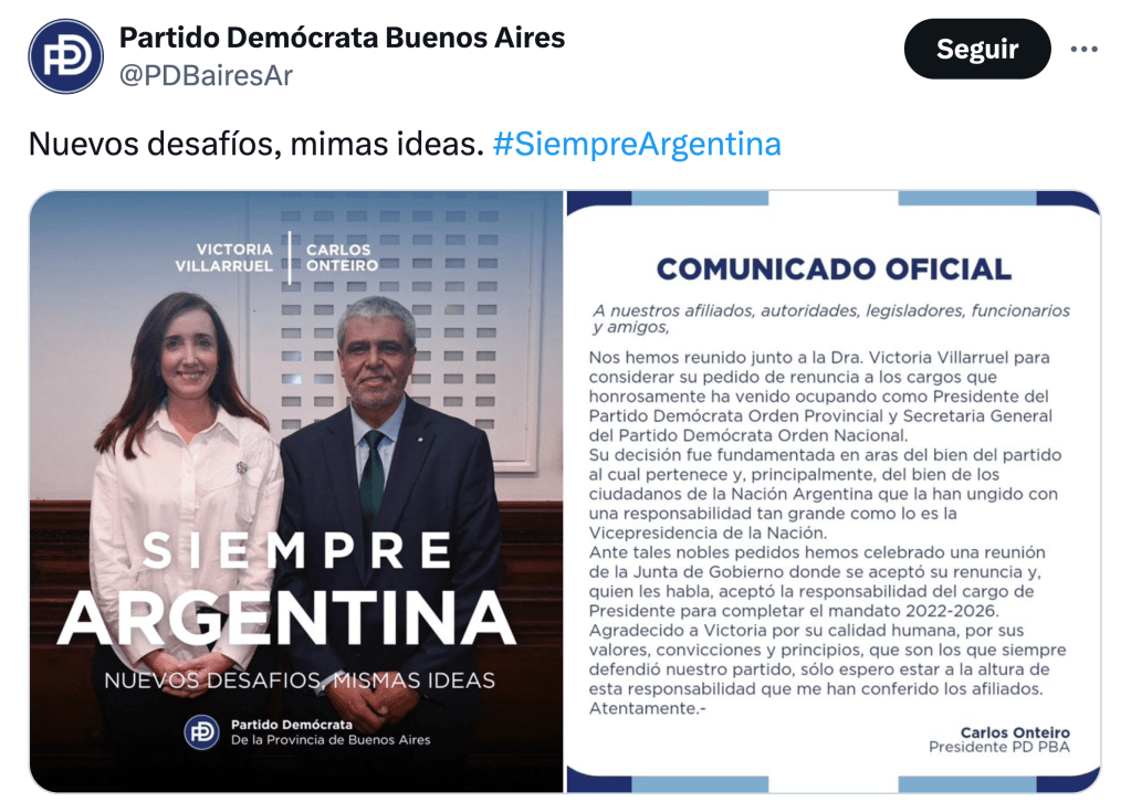 Más allá de apodos envenenados y de entredichos viejos y recientes, la vicepresidenta hizo punta en marcar distancia al renunciar a la doble titularidad nacional y bonaerense que ejercía en el Partido Demócrata (PD), integrante de La Libertad Avanza (LLA) y prestador principal de la personería que le permitió a esta alianza competir el año pasado. Dada, horas después, la decisión de la mesa chica presidencial de excluir a esa agrupación del armado para los comicios del que viene, cabe presumir que Villarruel trató de evitar que el sello demócrata se quedara sin tinta. No lo logró porque así de brutal es la interna oficial, que acaba de apartarla completamente del calor del poder.