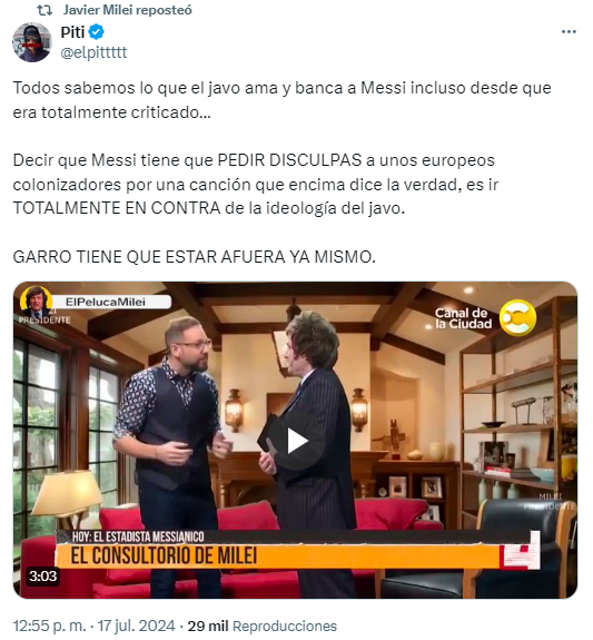 El nuevo novio de Yuyito González le reprocha a su segunda haber empiojado la relación con «un inversor importante y un país del Grupo de los 7», como si él mismo no hubiese hecho lo mismo una y otra vez con Estados y organizaciones más que relevantes para la Argentina como China, Brasil, España, México, Chile, Colombia, la Liga Árabe en pleno, los BRICS y hasta el Departamento de Hemisferio Occidental del Fondo Monetario Internacional (FMI). ¿Habrá descubierto justo esta semana la importancia de la diplomacia, el respeto y el buen gusto?