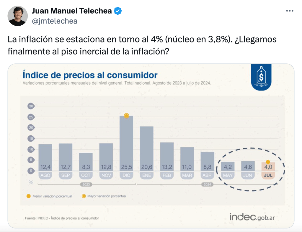 ¿Qué pasa con la economía argentina, que le cuesta horrores llevar el mayor de sus dramas por debajo de ese piso blindado? Se podría pensar en una maldición, pero en realidad es un efecto de la inercia… mal que le pese al vocero y también economista Manuel Adorni, que en la víspera había considerado que el fenómeno estaba «técnicamente terminado«. Habrá que seguir trabajando, parece.