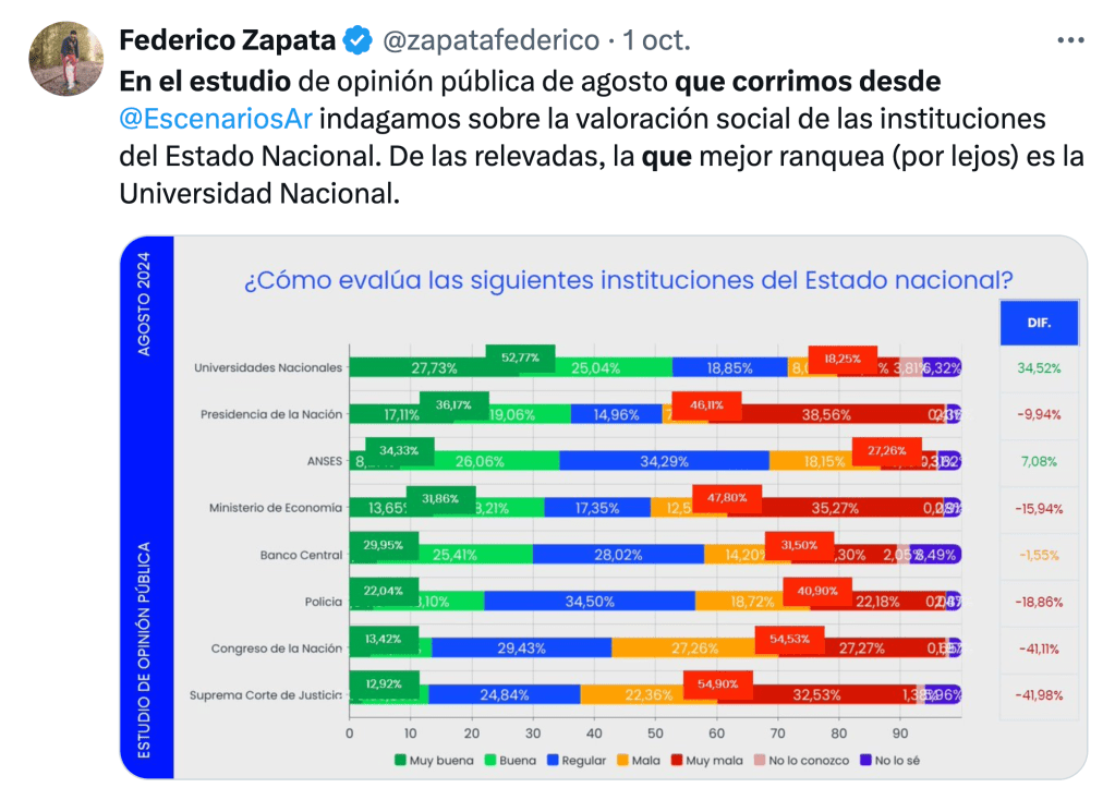 La consultora Escenarios muestra a las universidades nacionales como las instituciones con mejor ponderación social, verdaderamente por un campo. Analogías presentó un panorama coincidente: