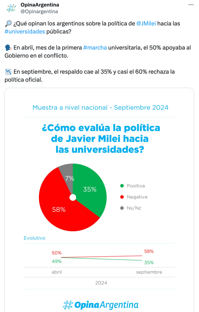 En tanto, de acuerdo con Opina Argentina, el apoyo a la política oficial para el sector se desplomó del 50 al 35% desde abril.