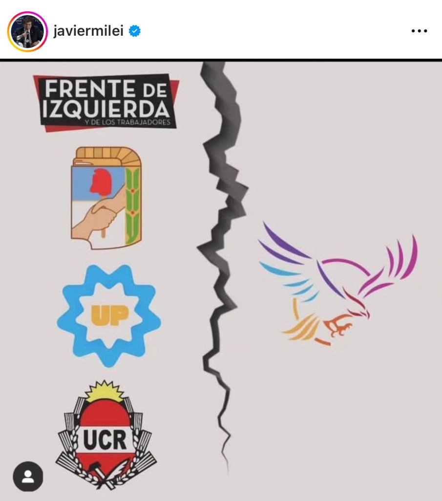 Este jueves echó fuego por la boca al postear una ilustración que muestra a LLA sola, a la derecha de una grieta que la separa de lo que denomina «frente de izquierda populista», conformado por el cristinismo, el peronismo no K, el radicalismo y el trotskismo. Ojo: ¿y si el deseo se le cumpliera en alguna medida entre 2025 y 2027?