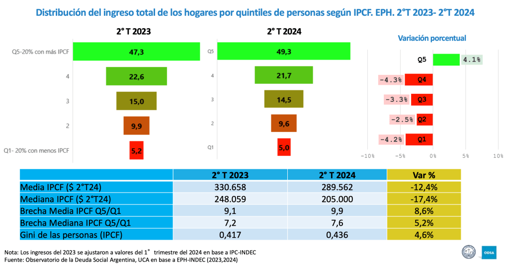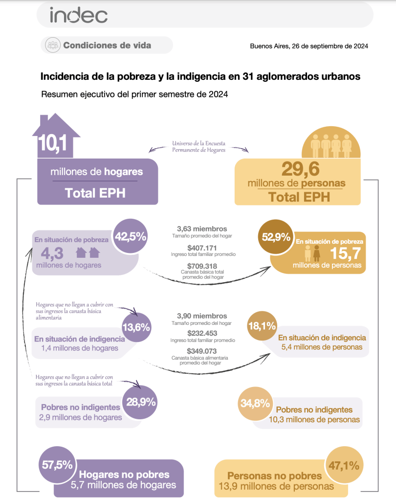 –Si se observa que Macri salió del poder, tras la crisis de 2018 y 2019, con una pobreza del 35,5%, que Alberto Fernández se fue con 41,7% y que la última medición, con Milei, fue de 52,9%, surge que a ese núcleo duro se sumaron sectores que cayeron desde la clase media.