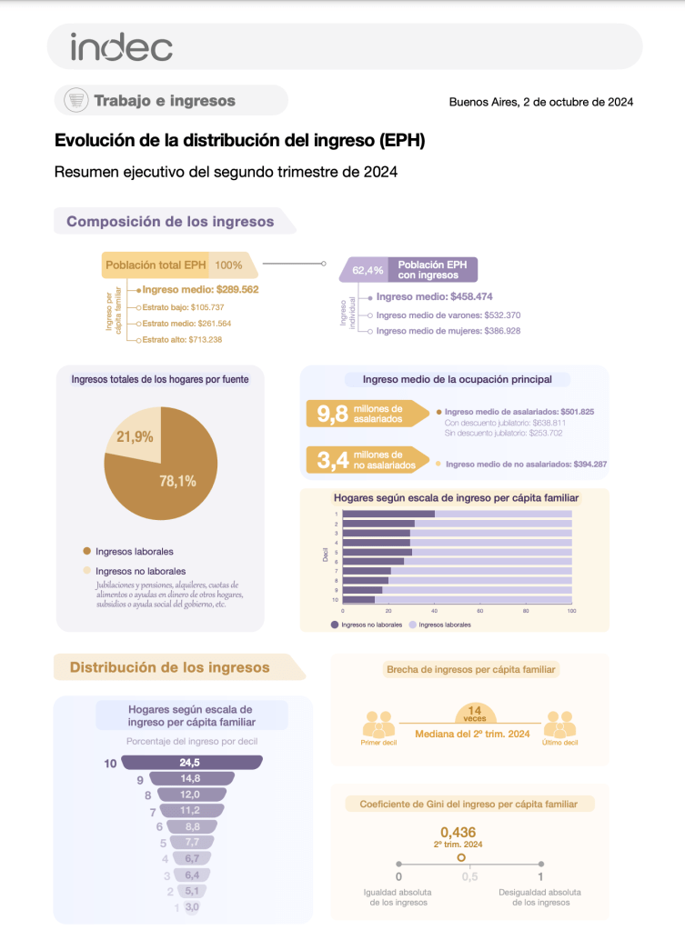 –De acuerdo con las estadísticas del INDEC, la mediana de los ingresos indica que el 50% de los trabajadores gana menos de 550.000 pesos por mes. Pero ojo: el proceso había empezado antes, aunque se lo ocultaba con burbujas de consumo como las mencionadas, o como la de 2017, las que llevaron a las devaluaciones de 2014 y de 2018-2019, respectivamente.