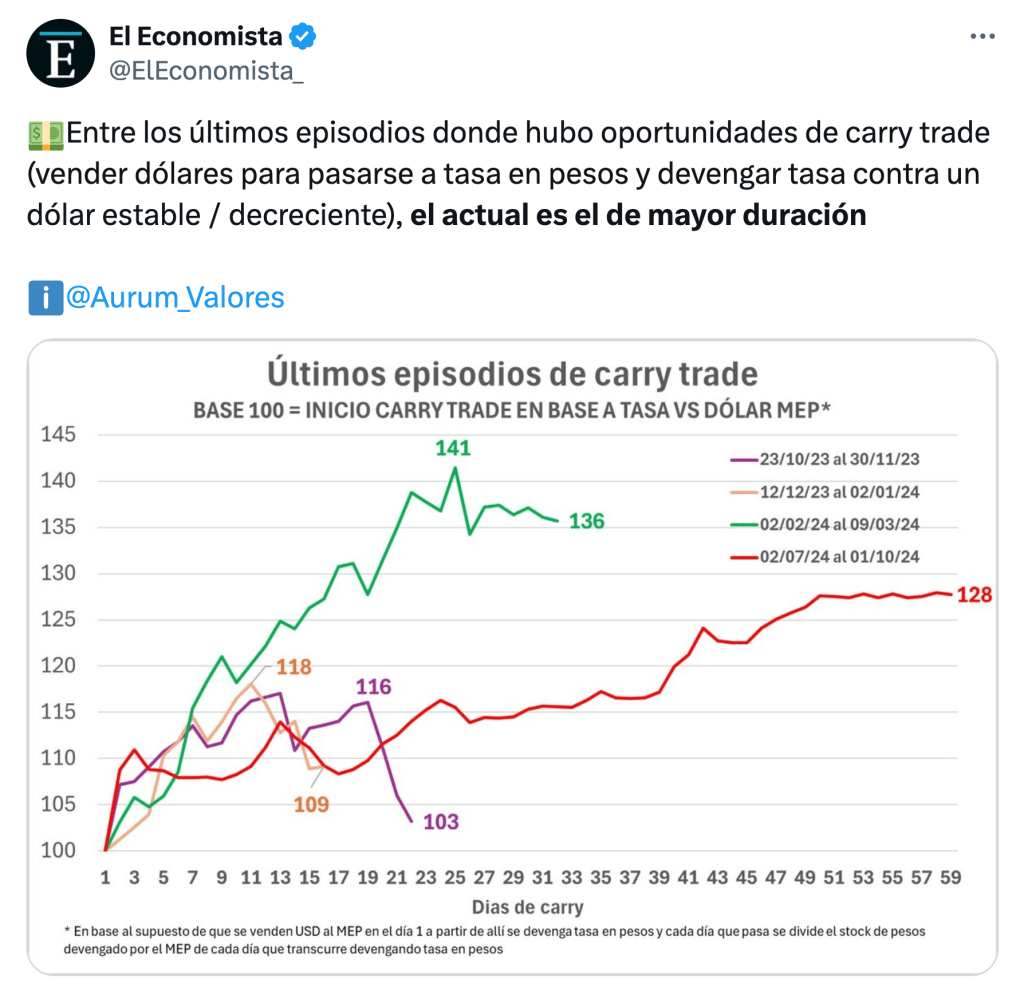 El actual ciclo de carry trade es el más extenso de todos los recientes. Caputo lo hizo.