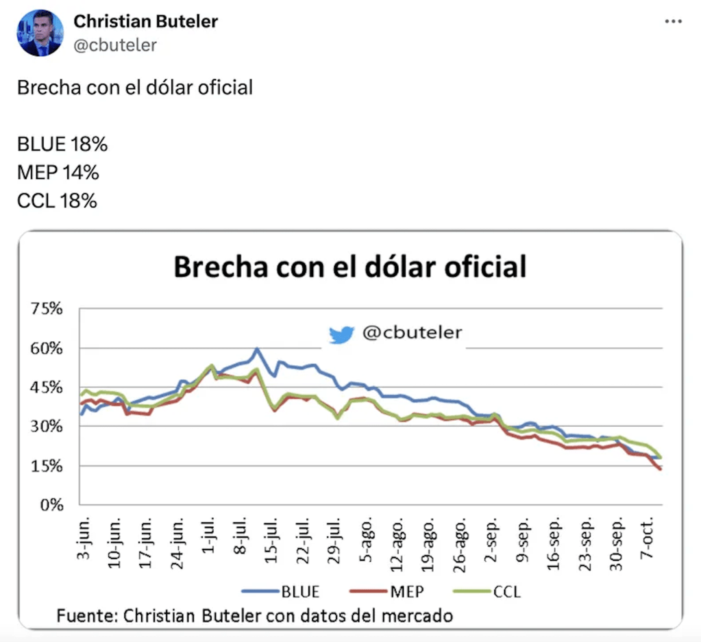 La combinación de esas dos tendencias ha comprimido la brecha por debajo del 20%, lo que cumple con lo pronosticado por el ministro de Economía y, se supone, acercaría la salida del cepo.