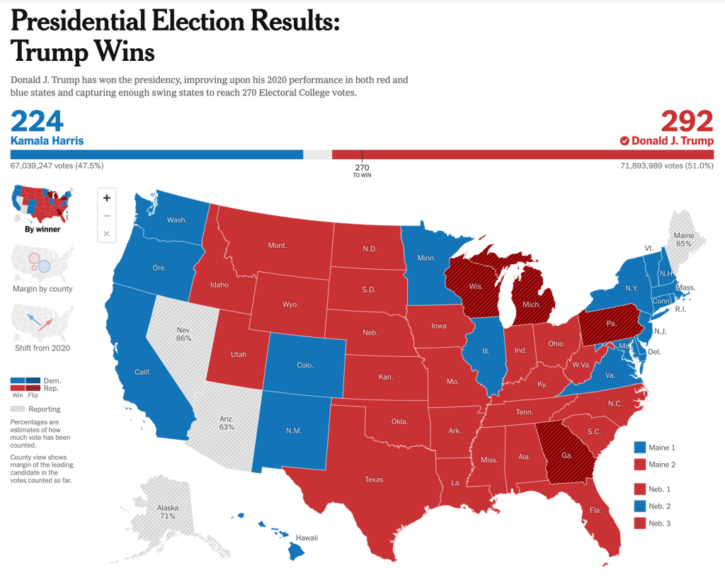 El Trump que vuelve a la Casa Blanca tras protagonizar escándalos, polémicas, juicios sonados y hasta el intento de golpe de Estado del 6 de enero de 2021 es un hombre empoderado. Ganó en voto popular, lo que le da una dimensión mayor de legitimidad, más allá de lo ocurrido con el Colegio Electoral y con la extensión geográfica de sus triunfos.