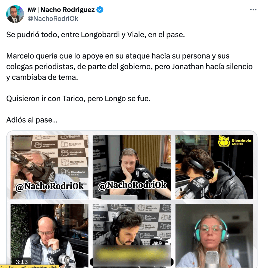 Este miércoles, Longobardi no se prestó al pase que realizaba habitualmente en Radio Rivadavia con Jonatan Viale. Las causas ya habían quedado claras en un martes de furia, en el que aquel primero interrogó sobre la violencia oficial a Guillermo Francos, quien no atinó más que a emitir balbuceos– y luego al militante mileísta Viale por su falta de solidaridad.