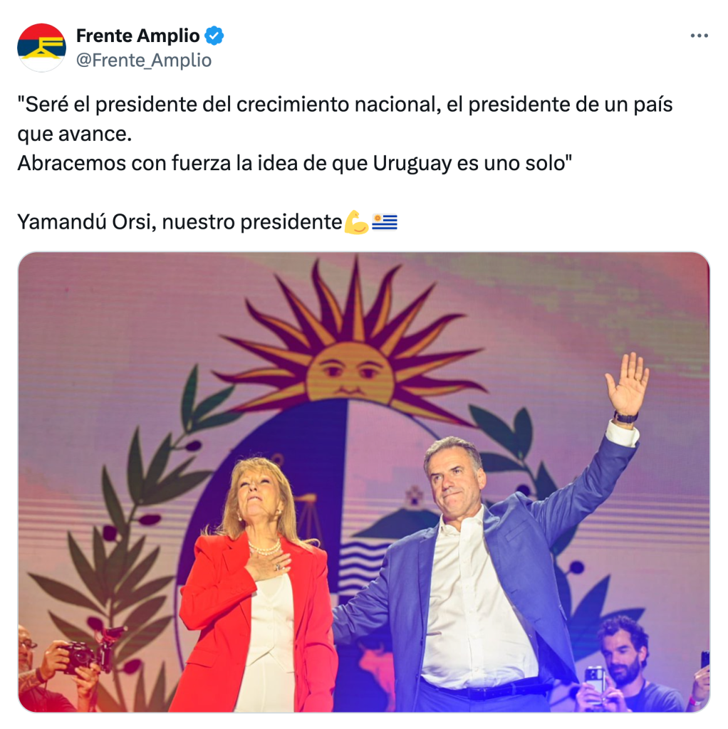 Yamandú Orsi se impuso en el ballotage presidencial y la izquierda volverá al poder en Uruguay. El hombre del Frente Amplio (FA), donde milita en el mujiquista Movimiento de Participación Popular (MPP, ex-Tupamaros), obtuvo 49,8% de los votos positivos frente a 45,9% de su rival, el oficialista Álvaro Delgado (Partido Nacional – Coalición Republicana). El resto correspondió a sufragios en blanco y anulados.