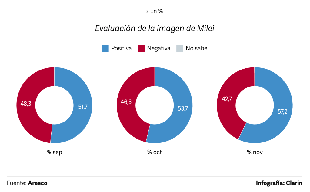 Al menos según lo que indica la mayoría de las encuestas, nada de eso roza por ahora la ponderación social de la figura de Milei.