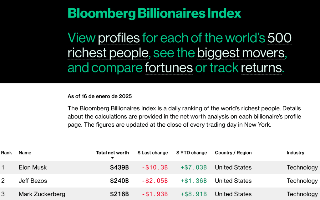 Este es el podio de los multimillonarios mundiales según el ranking de Bloomberg. Nunca en la historia se conoció una riqueza y un poder semejantes.