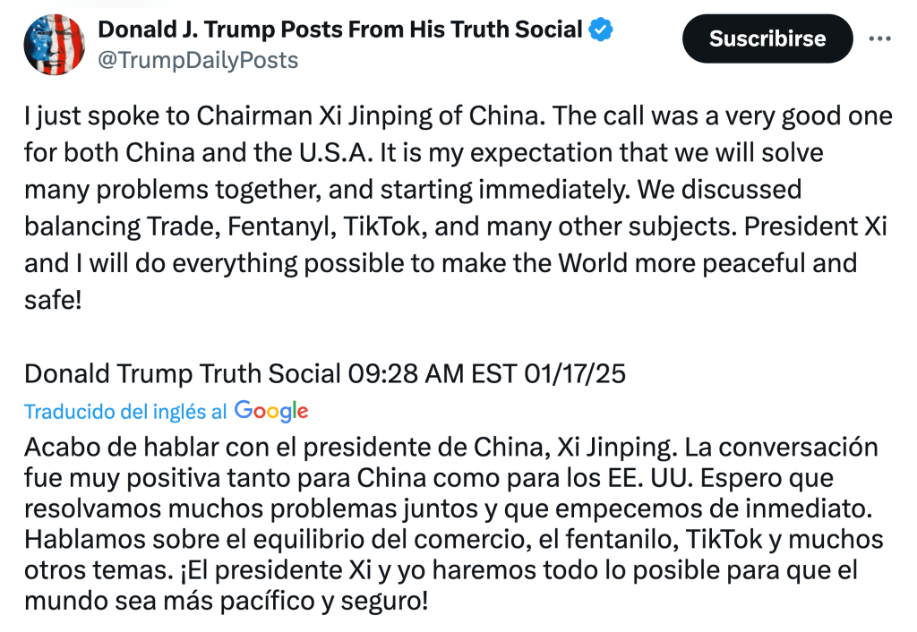 Inmediatamente después de haber amenazado a Pekín con la imposición de aranceles a todas las exportaciones que realiza a los Estados Unidos, Trump invitó a Xi Jinping a la jura, toda una excepción al talante ideológico que predominará. Naturalmente, el líder chino no acudirá a semejante besamanos, pero tampoco puede ignorar el gesto. En su lugar acudirá el vicepresidente Han Zheng.