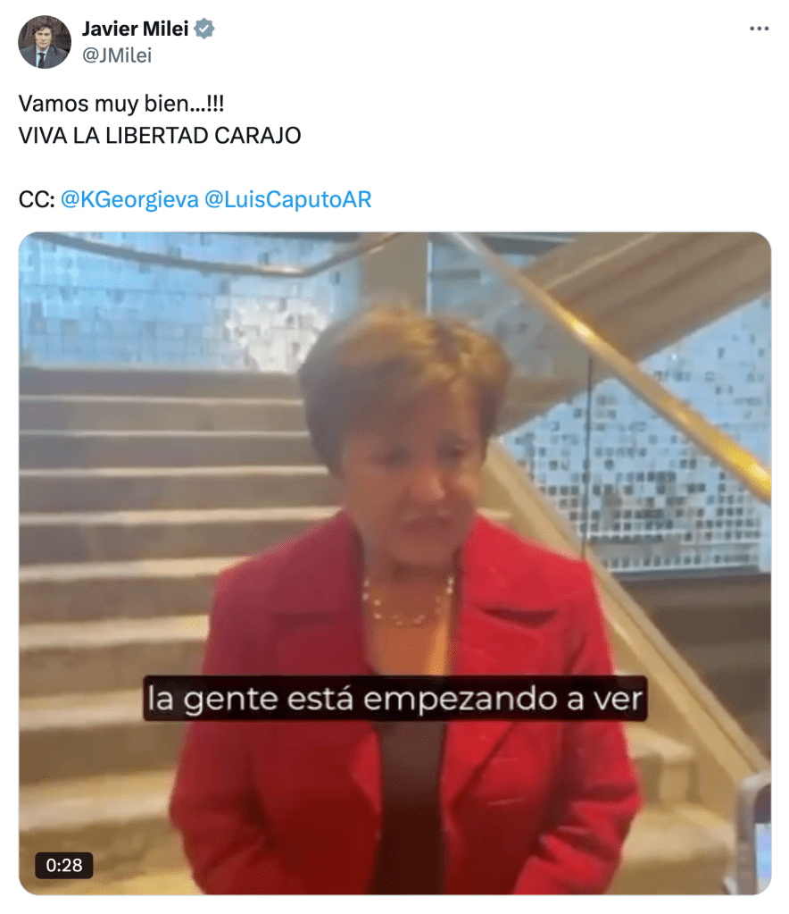 Sin embargo, por otro lado, Trump constituye una garantía de apoyo al Gobierno –lo que no equivale a decir a la Argentina– en el Fondo Monetario Internacional (FMI). La titular del organismo, Kristalina Georgieva, se reunió ayer por cuarta vez con el anarcocapitalista, a quien llenó de elogios demostrando qué es una política sagaz que entiende perfectamente desde donde soplará el viento a partir de hoy.