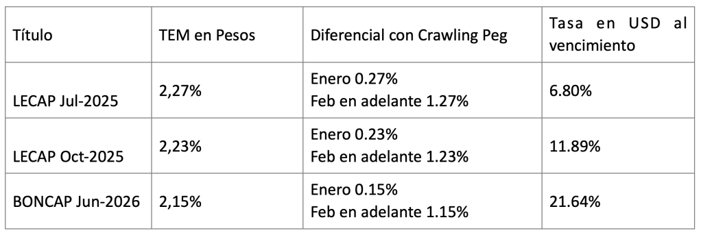 «La reducción del crawling peg al 1% mensual a partir de febrero, junto con la estabilidad de la tasa de política monetaria en 32%, configura un escenario propicio para futuras licitaciones en un marco en el cual el carry trade aparece como factor esencial del análisis«, afirma Netia Group. «Hasta la llegada de un nuevo acuerdo con el FMI, seguramente con el aporte de fondos frescos, esta estrategia persistirá», sumó.