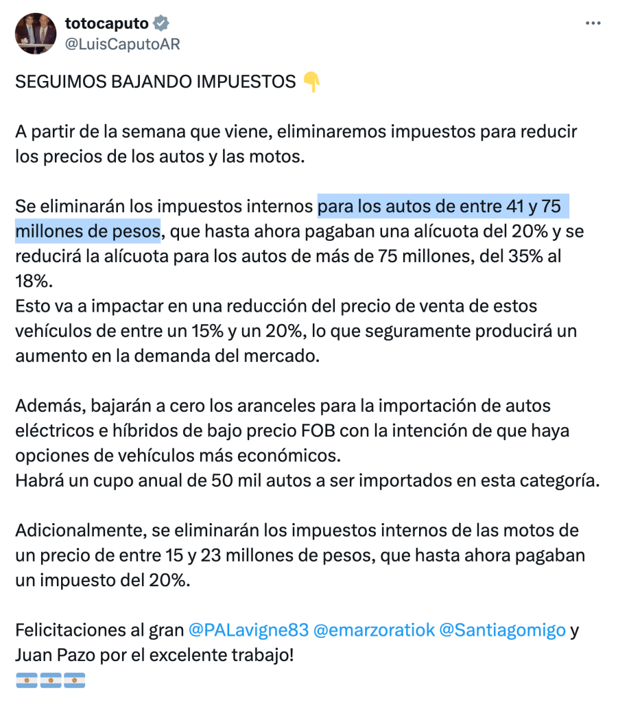 El Estado nacional hizo punta en la rebaja de impuestos con la reducción de los vigentes para autos de gamas altas, un acto de justicia que no se entiende porqué no se extiende a los más accesibles.