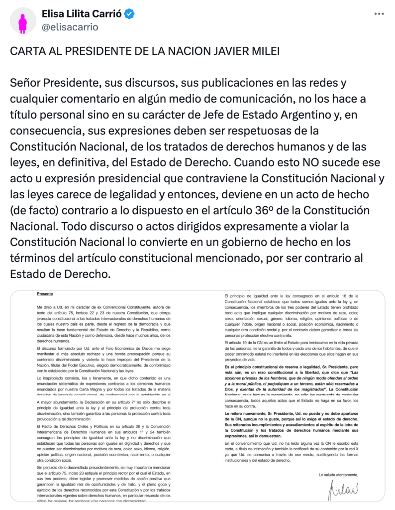 Milei es un presidente pequeño especialmente en relación con la hermosa, monumental Constitución que rige la vida democrática. De sus propias palabras surge que no cree en derechos como la educación y la vivienda, en los tratados internacionales consagrados por ella, en la noción internacionalmente prevaleciente sobre los derechos humanos, en el cuidado del medio ambiente que demanda ni en la justicia social que estipula el 14 bis.