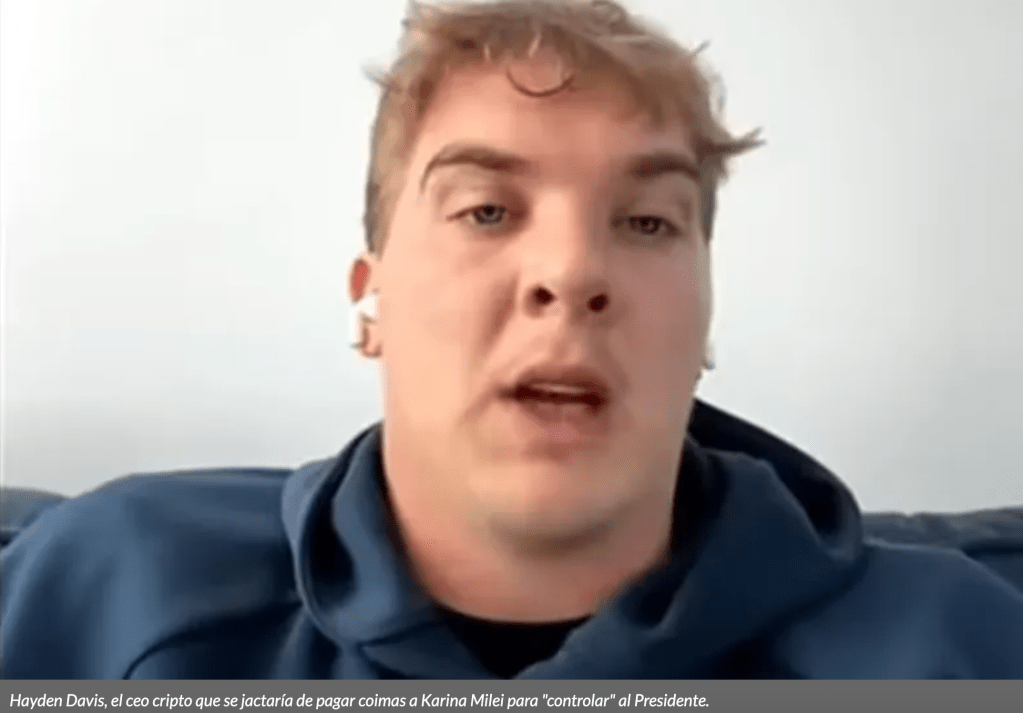 «El cocreador del token Libra afirmó que le pagó a la hermana del presidente argentino Milei», dijo el sitio CoinDesk, de referencia en el mercado de los criptoactivos, en referencia al ceo de Kelsier Ventures, Hayden Davis, el mismo que se ha entrevistado con el jefe de Estado y se ha declarado asesor del mandatario, sin que la afimación haya sido desmentida por el Gobierno. Por una vía independiente, La Nación se hizo eco de la misma información.