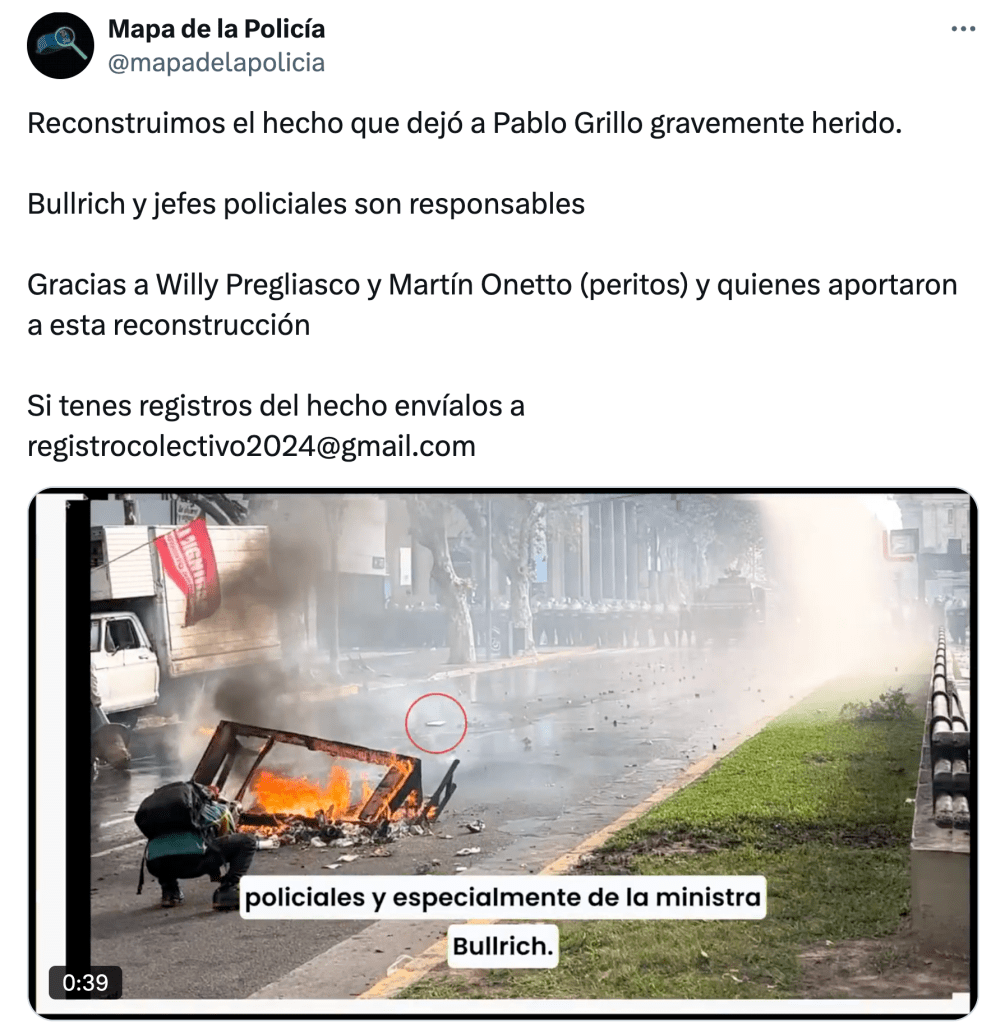 La suerte de Pablo Grillo tal vez no sea un «daño colateral» –Florencia Arietto dixit–, sino un anticipo.