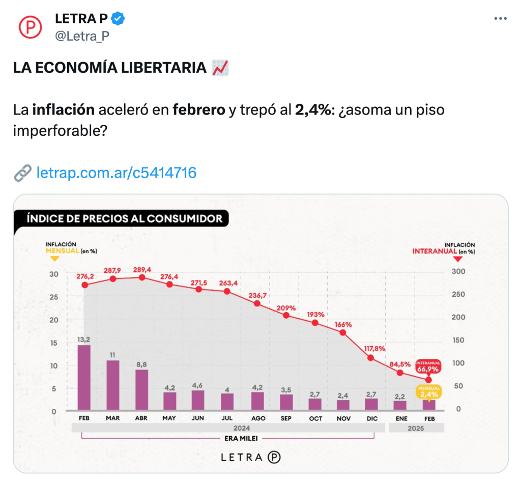 «¿Otra vez sopa?», podría preguntarse, con fastidio, la parte de la sociedad que apoya al Gobierno a pesar de los esfuerzos que se le han impuesto en estos meses, tolerables mientras la desinflación valga la pena y cuando el IPC viene estancado en el dos y pico por ciento desde hace cinco meses.