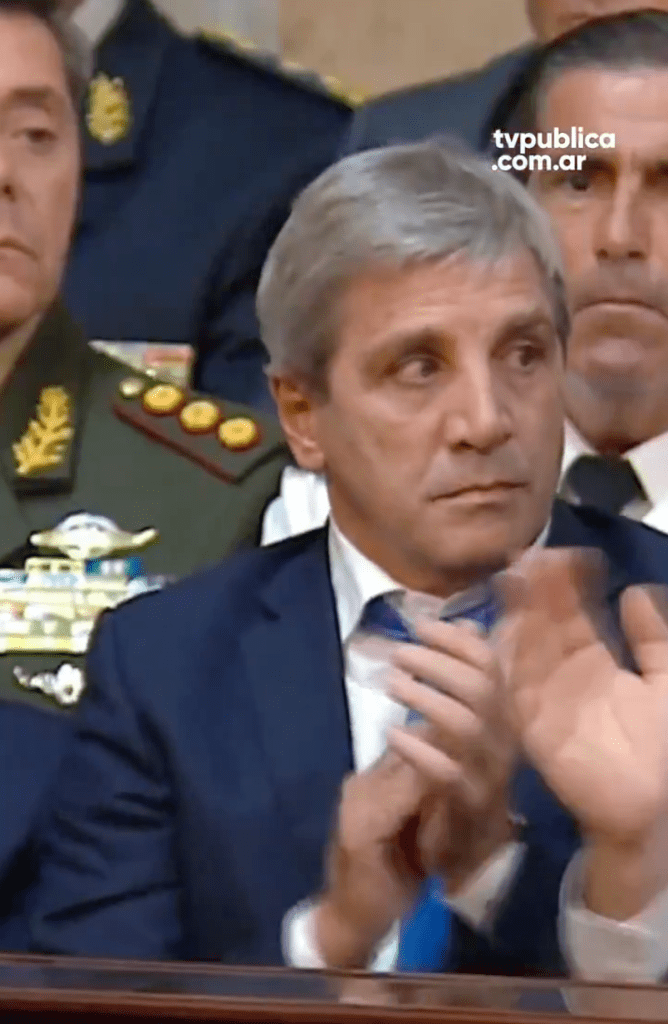 Durante la última apertura de sesiones del Congreso, Toto Caputo no pudo evitar un gesto de sorpresa al escuchar la promesa de Javier Milei de eliminar este mismo año las restricciones cambiarias.