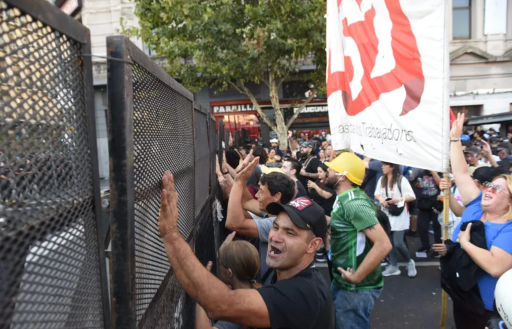 Estas se movían en las calles aledañas. En un momento, una pequeña patrulla perdida de efectivos que caminó por Avenida de Mayo entre los manifestantes –toda una rareza– fue increpado al grito de «¡asesinos!».