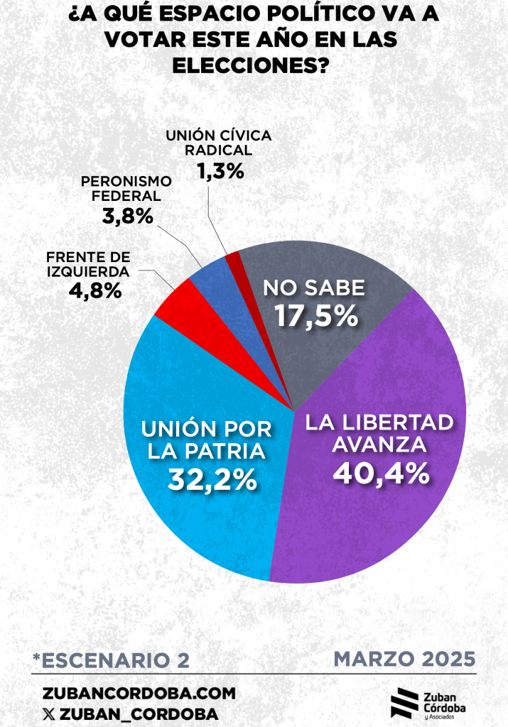 De cara al 26 de octubre, con todo, arrojó un empate en 29% entre quienes dicen que votarán al oficialismo y quienes lo harían por la oposición.