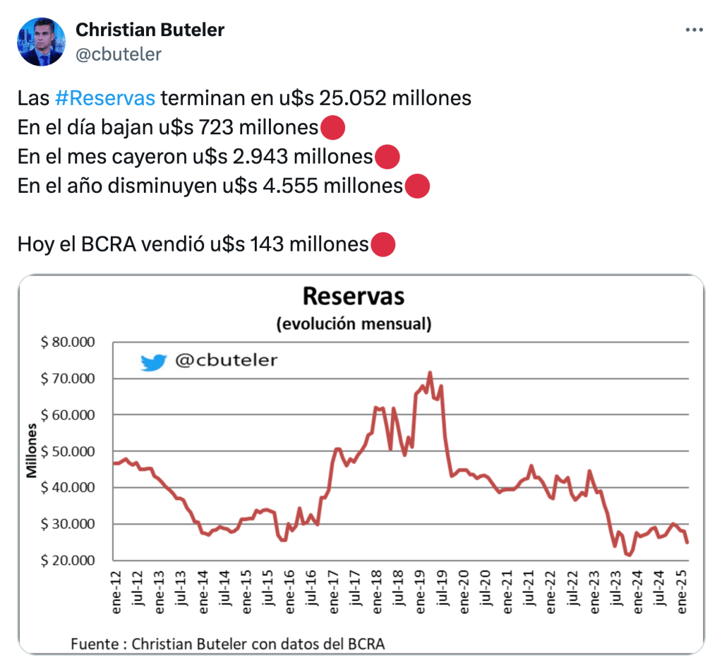 De no cortarse la sangría, las reservas brutas de la autoridad monetaria perforarán pronto, acaso hoy mismo, el piso de los 25.000 millones de dólares.