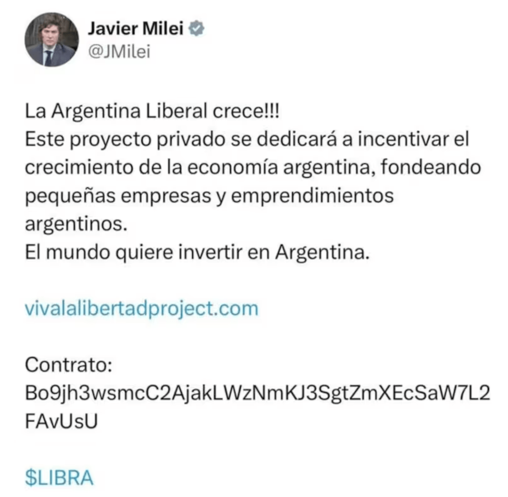 El tuit del escándalo: Javier Milei difunde la criptomoneda $LIBRA.