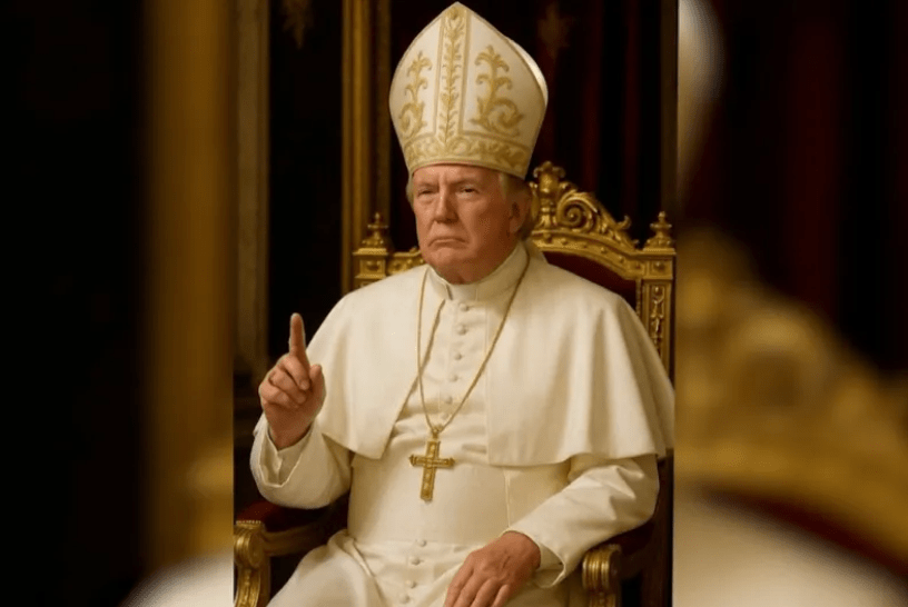 La segunda, parca, llegó acompañada de una imagen generada por inteligencia artificial que muestra a un león vestido como papa. ¿Él mismo?