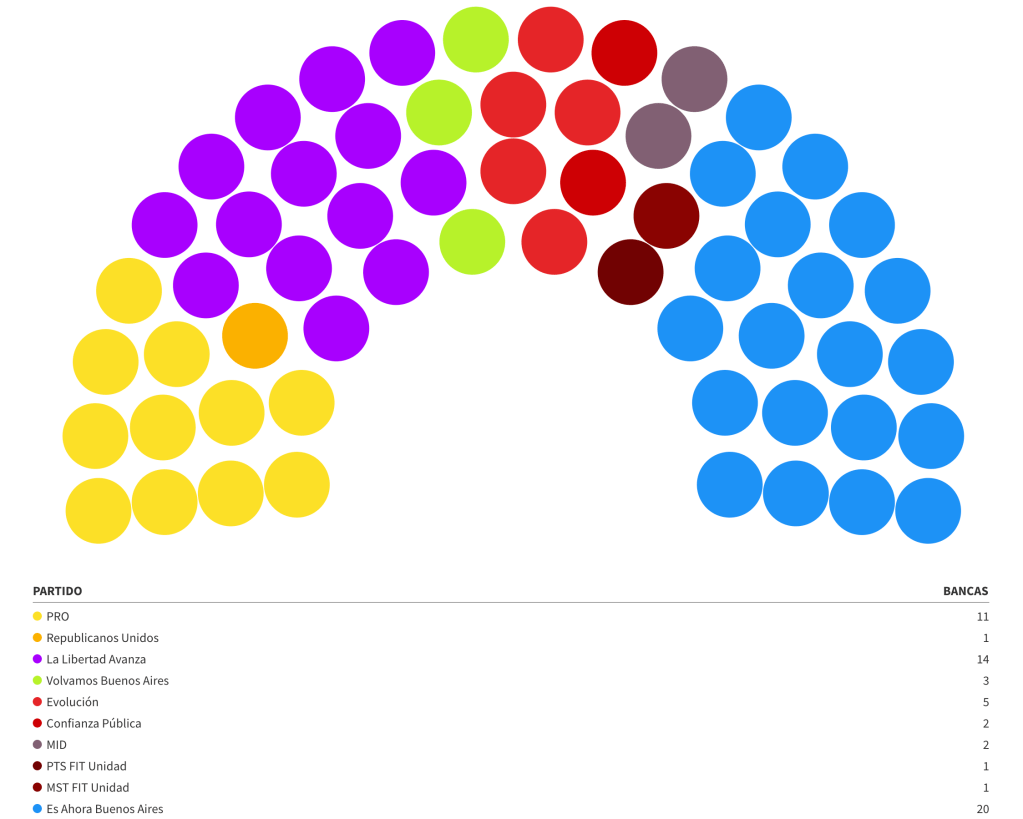 En tanto, el peronismo arriesgaba ocho y ubicó diez. En el PRO salen seis y entran cinco. El radicalismo pierde las dos bancas que ponía en juego, El Frente de Izquierda una de dos y Larreta ingresa con tres. ¿Hay tanta novedad?