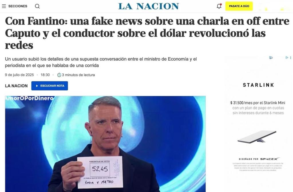 La Nación se hizo eco de inmediato de la desmentida del Ministerio de Economía, primero hablando de «fake news» y, minutos después, borrando esa expresión del titular, aunque sin atinar a corregir la URL, vestigio mudo del enredo que se autoinfligió.