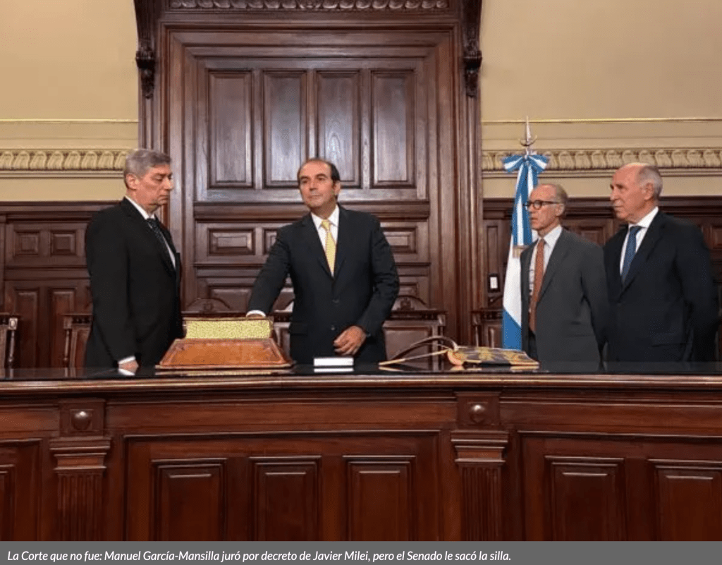 La última estuvo dada por la decisión de Milei de nombrar por decreto a Manuel García-Mansilla y Ariel Lijo en la Corte Suprema. El rechazo del Senado a esos pliegos estuvo rodeado de promesas oficialistas de resistencia, sobre todo en el primer caso, hombre que de hecho había jurado. Al final, primó la razón, García-Mansilla se fue a su casa y el país dio un paso atrás cuando estaba al borde del abismo de una aterradora inseguridad jurídica.