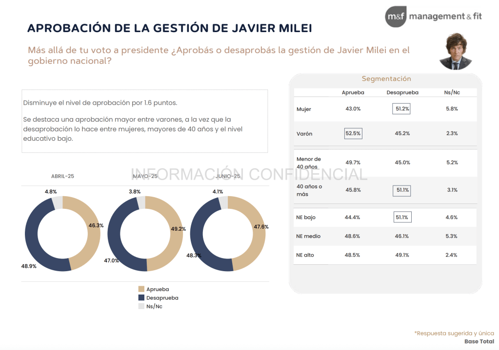 La situación de la Argentina de Javier Milei divide opiniones, según el último sondeo de Management & Fit.