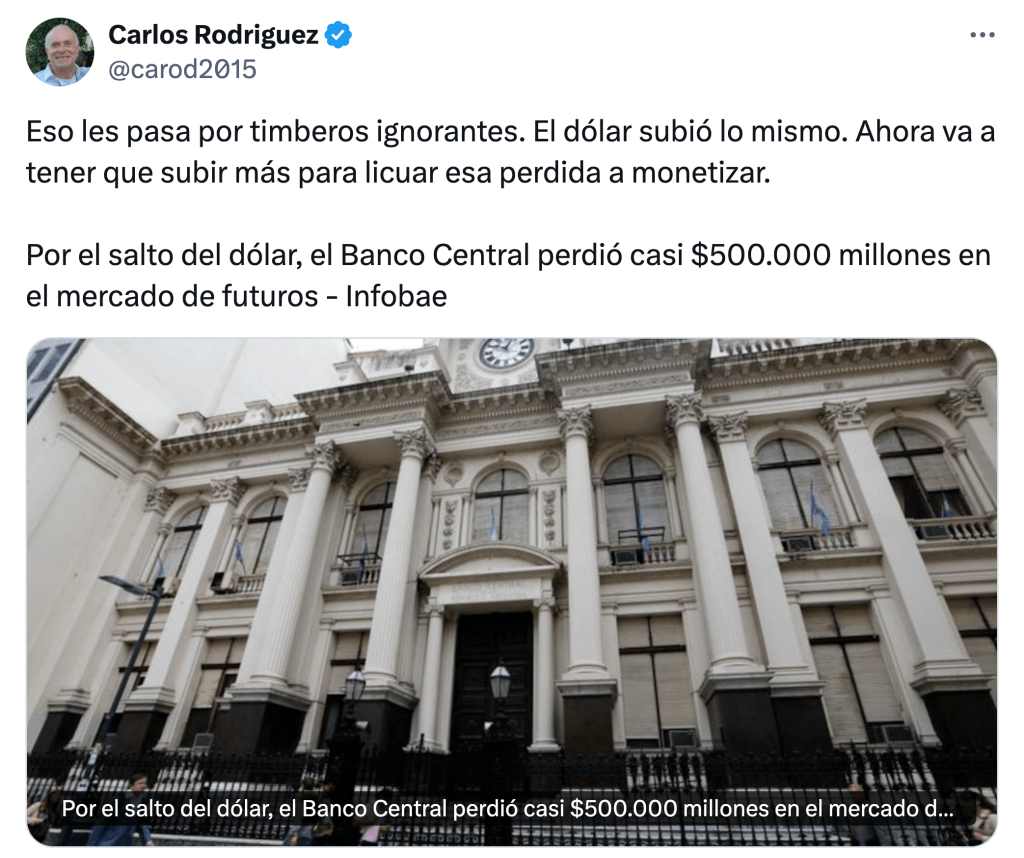 Se trata, otra vez y de un modo cuantificable, del riesgo Toto Caputo, un sobrecosto que la sociedad argentina paga cada vez que «el mejor ministro de Economía de la historia» pasa por la función pública, ya sea en concepto de endeudamiento, de pedaladas de bicicleta ruinosas o, como en este caso, de apuestas fallidas.