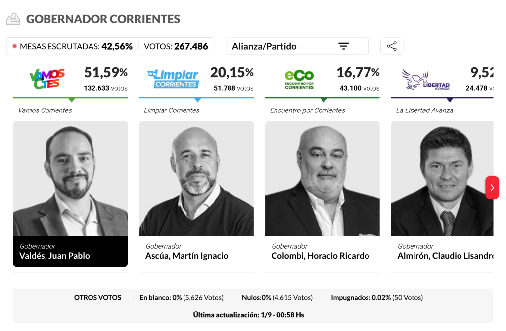 El cuadro del escrutinio deja a los Valdés como los grandes vencedores de la jornada, por haber salido primeros, pero más por haber superado el 50% de los votos y, con eso, haber quedado excedidos en los requisitos para evitar una segunda vuelta.