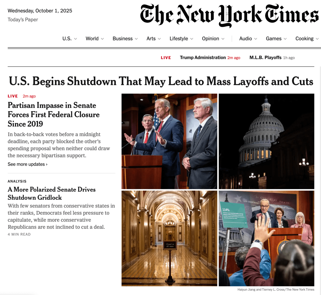 The New York Times anuncia el shutdwon que podría conducir a masivos despidos y recortes en la administración de Donald Trump.