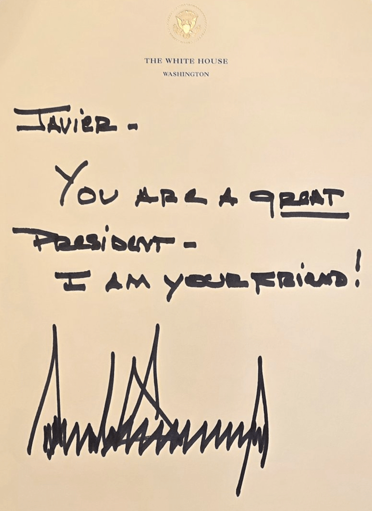 El autógrafo que Donald Trump le dejó a Javier Milei como único logro de la visita del martes a la Casa Blanca resulta una descripción gráfica del modo en que cada señal de Estados Unidos sobresalta a la siempre frágil economía argentina, ahora debilitada aun más por el fracaso del plan financiero de Toto Caputo.