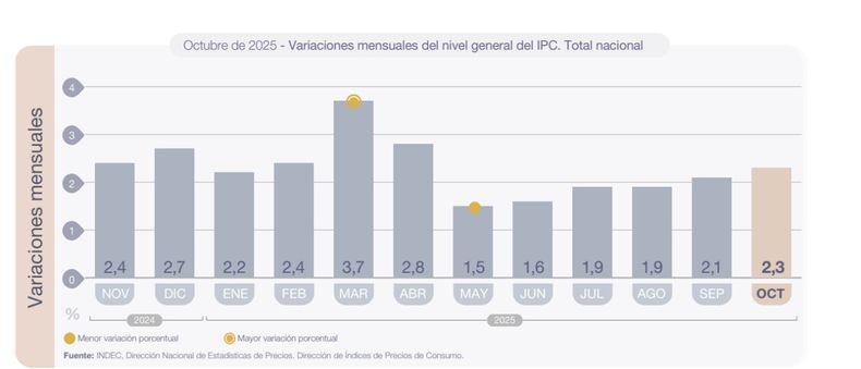 Encima, el índice de precios al consumidor (IPC) volvió a arrojar cierta estabilidad en octubre, 2,3% que, si bien marca una escalerita discretamente ascendente, cuenta con el atenuante de registrar el traspaso a precios de las convulsiones cambiarias del período. El Gobierno, que festejó 18 meses de reducción del índice interanual, espera que noviembre muestre un panorama algo mejor.