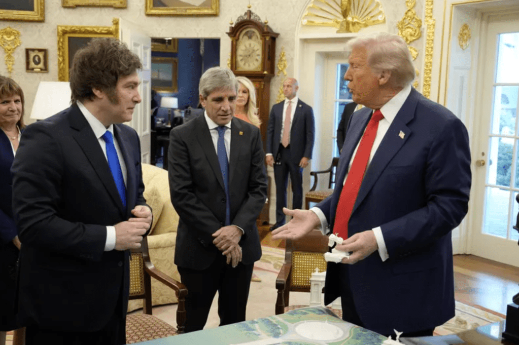 Javier Milei y Toto Caputo, atados a Donald Trump.