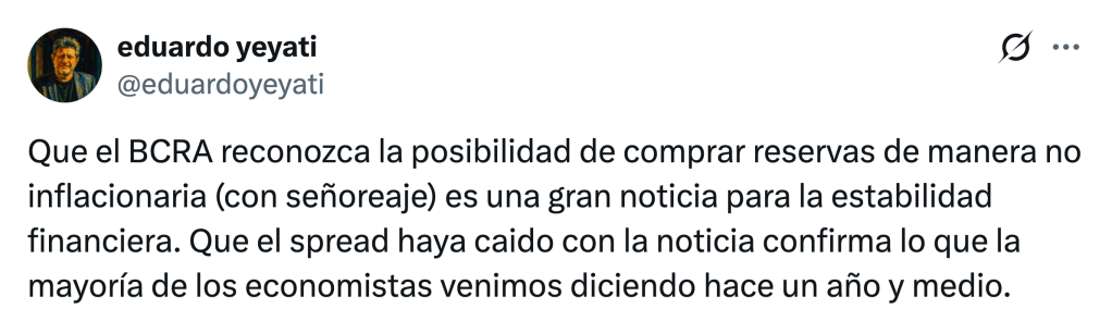 Al que no le gustó la medida fue al mayor defensor externo de la economía de Milei, el tucumano Ricardo Arriazu, quien la definió como «una tontera, pero una tontera moderada«.