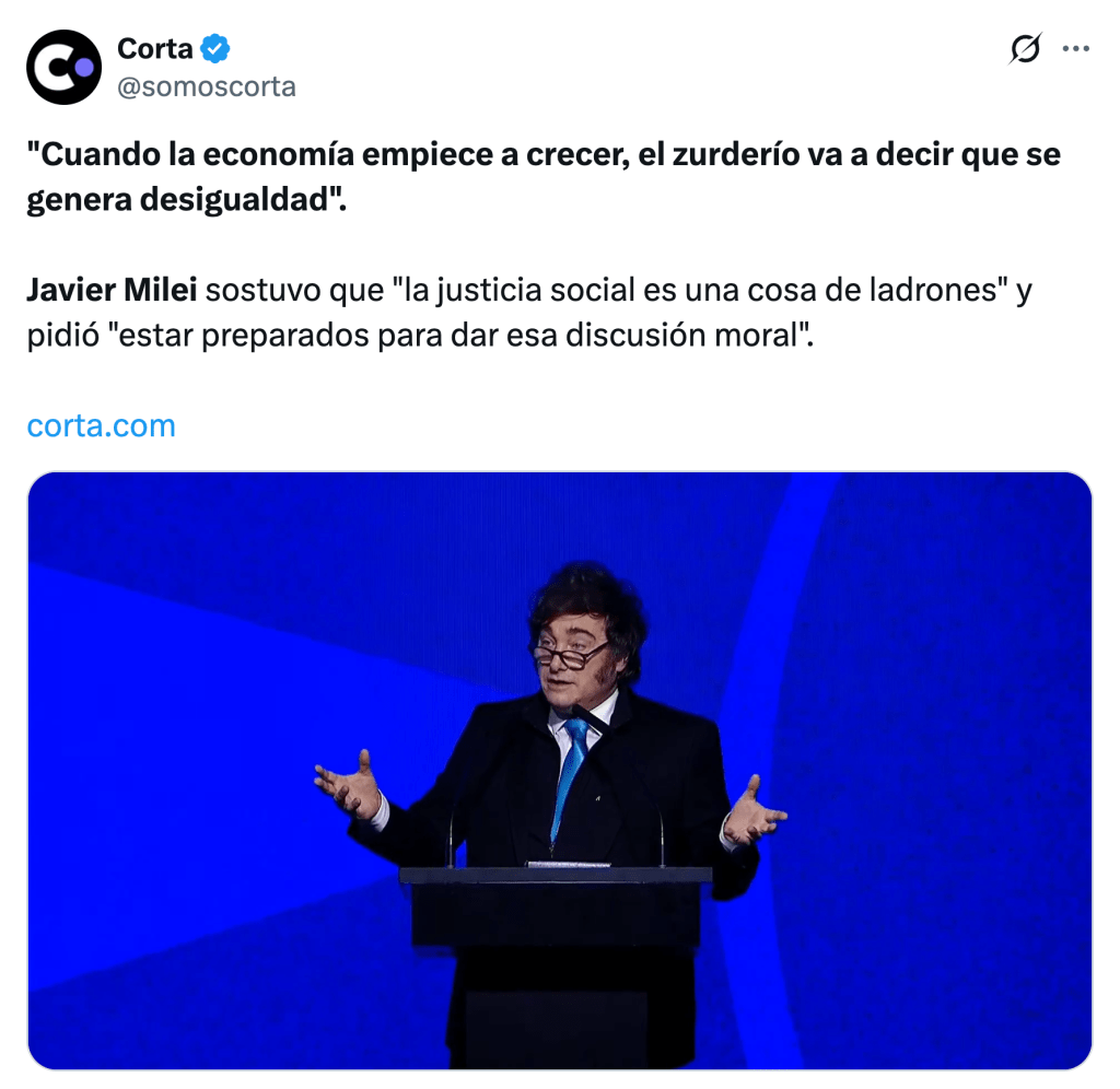 La economía que propone Milei es mayormente fría y el «pedo de buzo» no es más que uno de sus tantos pronósticos fallidos. Tanto es así, que este martes volvió a poner la carnada del crecimiento en el futuro. «Cuando la economía empiece a crecer fuertemente, ¿qué va a hacer el zurderío? Va a decir que se genera desigualdad«, auguró en tono burlón.