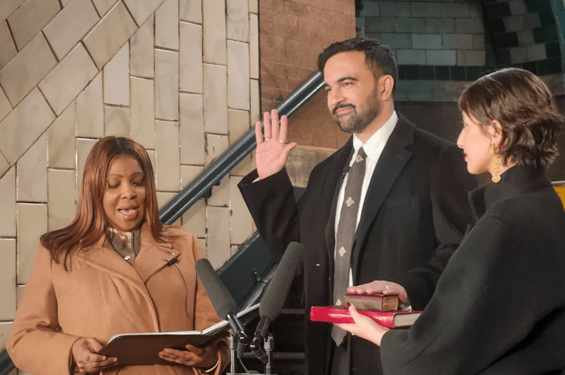 La ceremonia de su asunción, realizada en la estación City Hall del subte neoyorquino, estuvo llena de elementos tendientes a la generación de una nueva hegemonía político-cultural opuesta a la de la ultraderecha de Trump, Milei y afines.