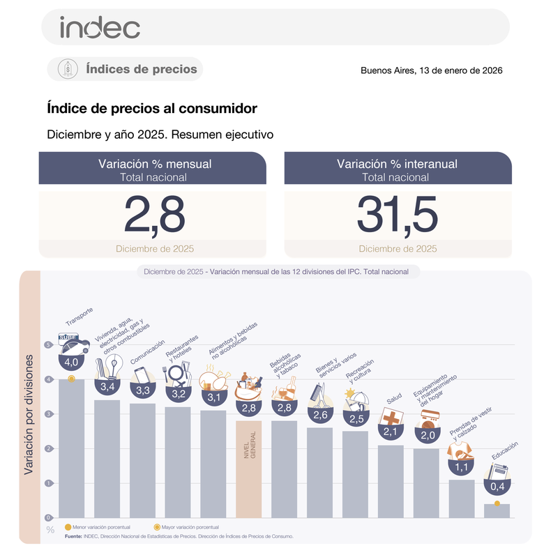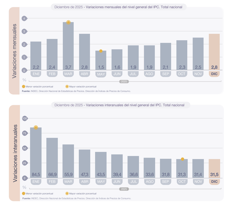 El oficialismo festejó que el guarismo de 2025 fue el menor en ocho años, pero hay que señalar que el de diciembre superó levemente el registrado un igual mes de 2024 –2,7%–.